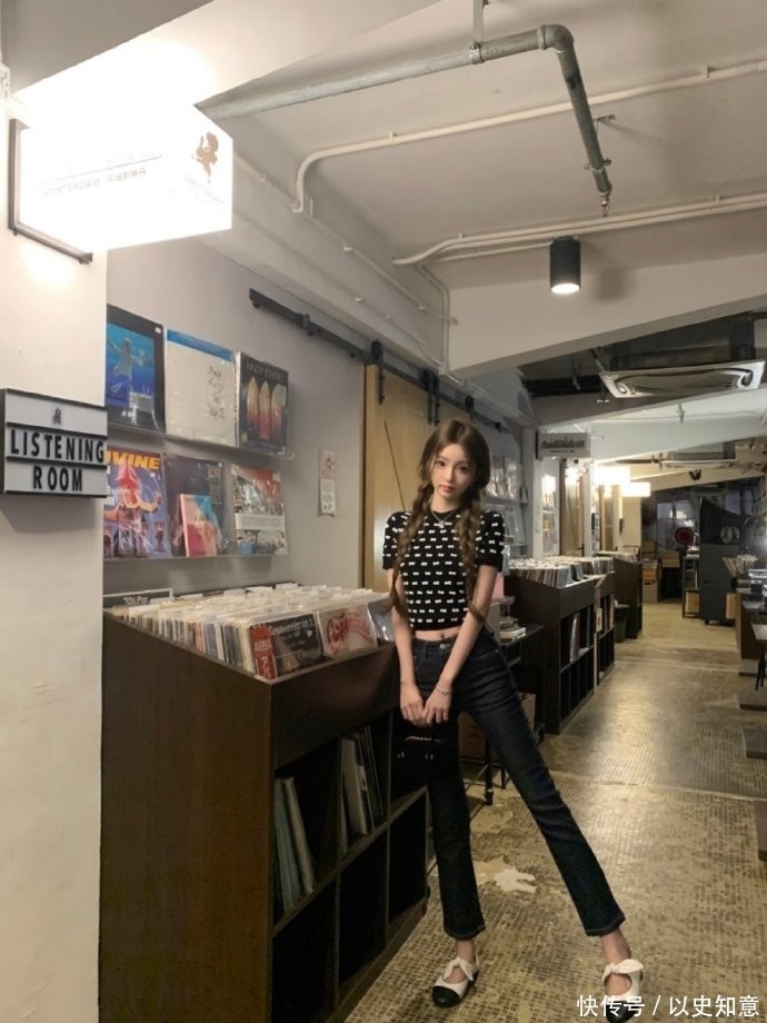 最近一次出镜中,懒懒以一件黑白几何纹路短款上衣搭配哑光黑微喇牛仔裤亮相,双股粗辫垂落胸前,腕间叠戴金属细链,手拎一只米白绗缝手袋,整体造型精准复刻小香风精髓——精致却不刻意,复古却不陈旧,举手投足皆是法式慵懒与东方灵秀的交融。